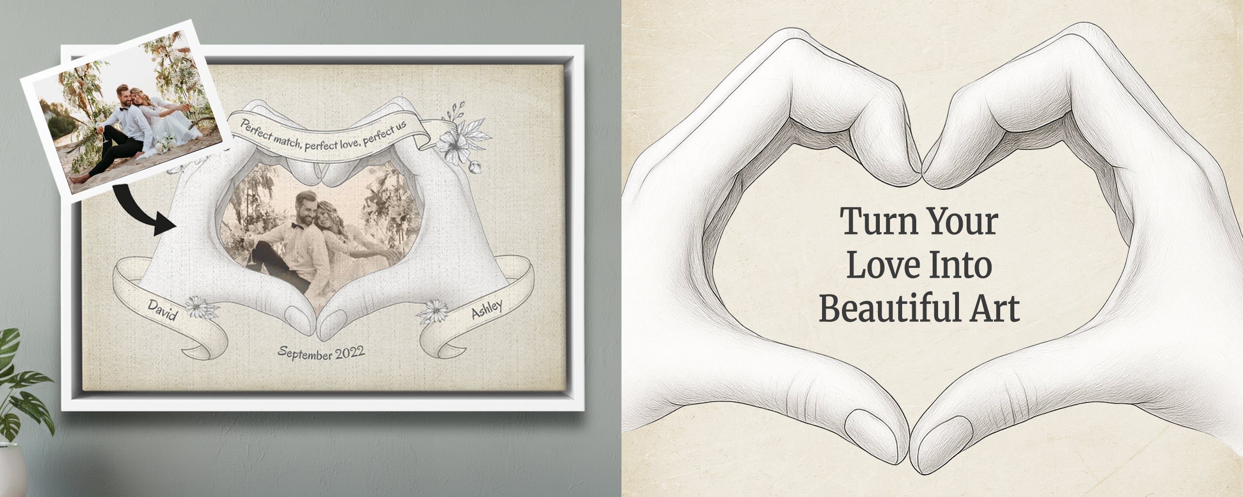 Every canvas is created to honor your unique love story and bring you closer together, turning your precious moments into beautiful art.